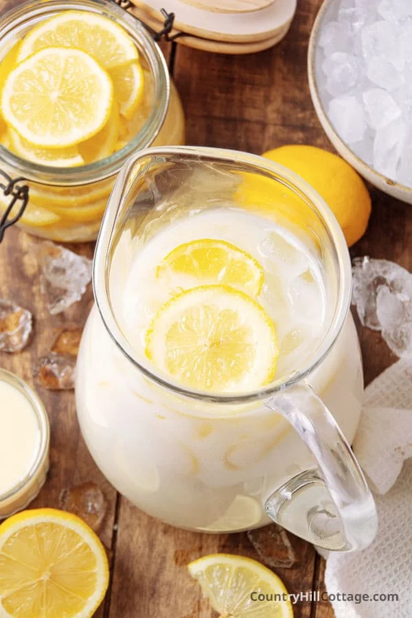 Store in an airtight pitcher in the fridge for up to 2 days; stir well before serving to remix flavors. Freeze lemon juice and condensed milk mixture separately for up to 1 month, thawing before mixing with water.