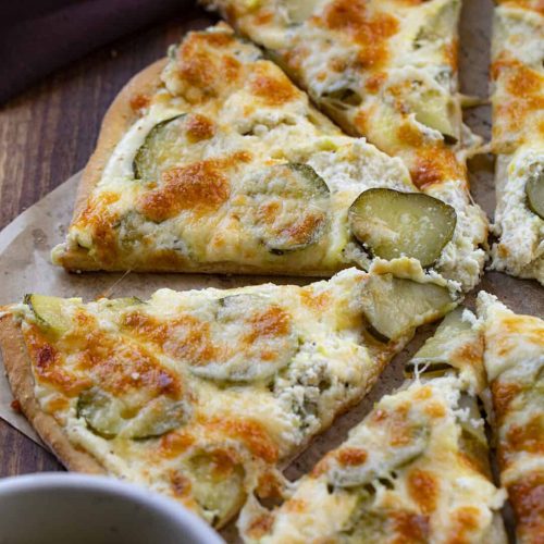 Substitutions: Use Greek yogurt instead of sour cream for a lighter sauce. Swap mozzarella with provolone for a different cheese flavor. Use gluten-free pizza crust for a gluten-free option. Replace dill pickles with bread-and-butter pickles for a sweeter taste.